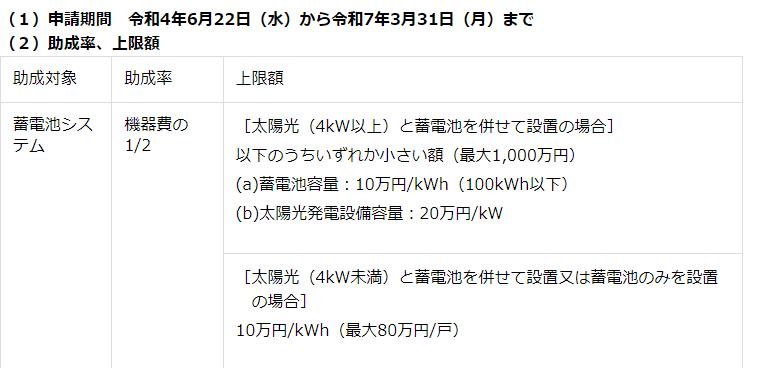 蓄電池のみ設置の場合1kWhあたり10万円(最大80万円)