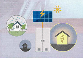 電力の残量維持の設定によりBCP対策において重要な電源の確保が可能です。停電時、蓄電池システムは自動的に蓄電池からの電源供給に切り替わります。